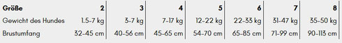 Falls Sie sich trotz der Größentabelle unsicher sind, welche Größe die richtige für Ihren Hund ist, beraten wir Sie gerne telefonisch unter 07306/928448. Gerne senden wir Ihnen auch mehrere Größen zur Probe zu.